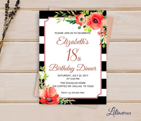 18th Birthday Invitation Floral Birthday Invitation Any Age Etsy